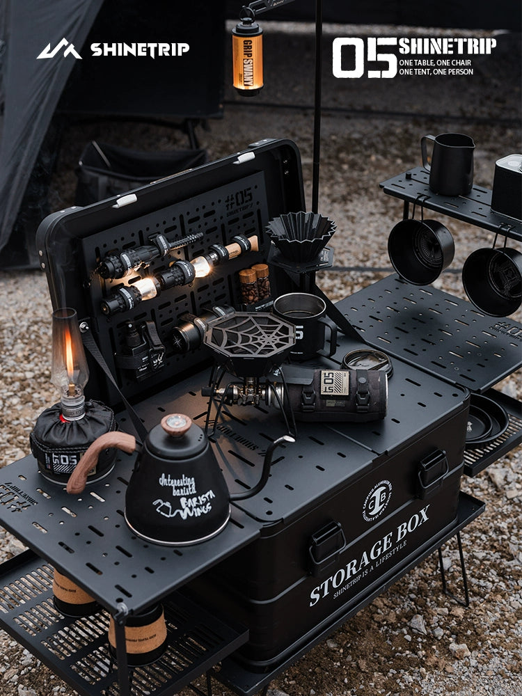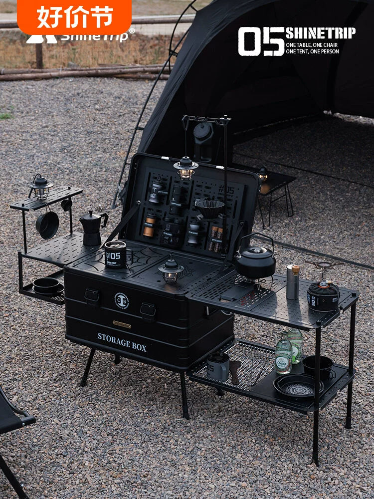 The Last Aztec, Mountain Fun Coffee Box Outdoor Aluminum Alloy Multifunctional Car Camping Storage Box Blackened Camping Equipment IGT Table